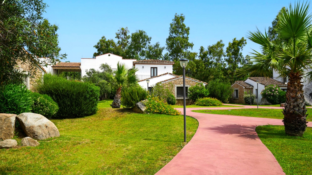 Il Resort dispone di 134 camere, tutte arredate in tipico stile sardo, suddivise tra camere doppie, triple, quadruple (con letto a castello) e bilocali Family Room, tutte con patio o veranda, dislocate in diverse corti a due piani (piano terra e primo piano) circondate da giardini fioriti.